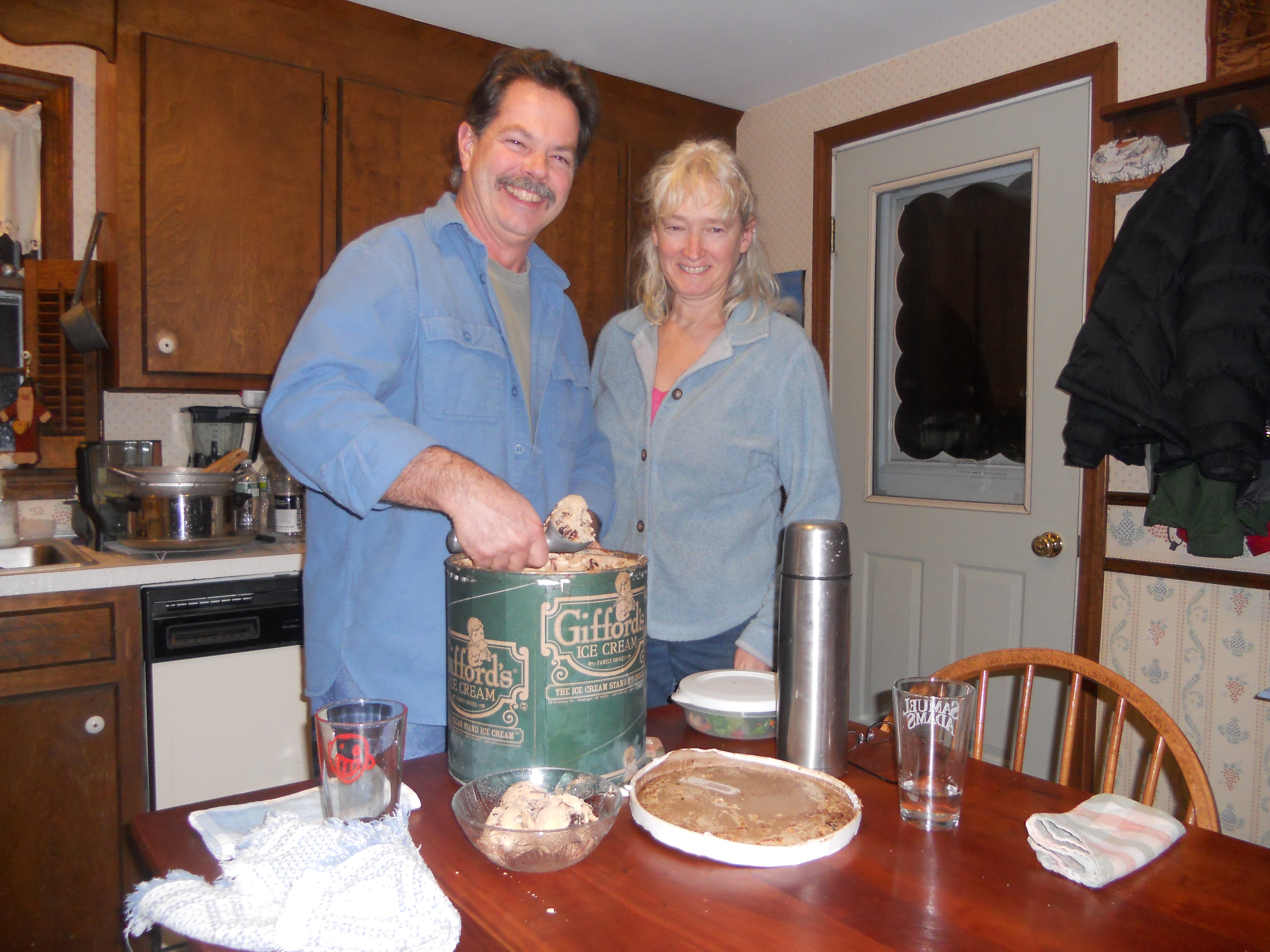 So Becky tells me she had an ice cream stall in the summer and still has some in a huge freezer. She places what looks like a 5 gallon tub on the table and asks me if I have enough!