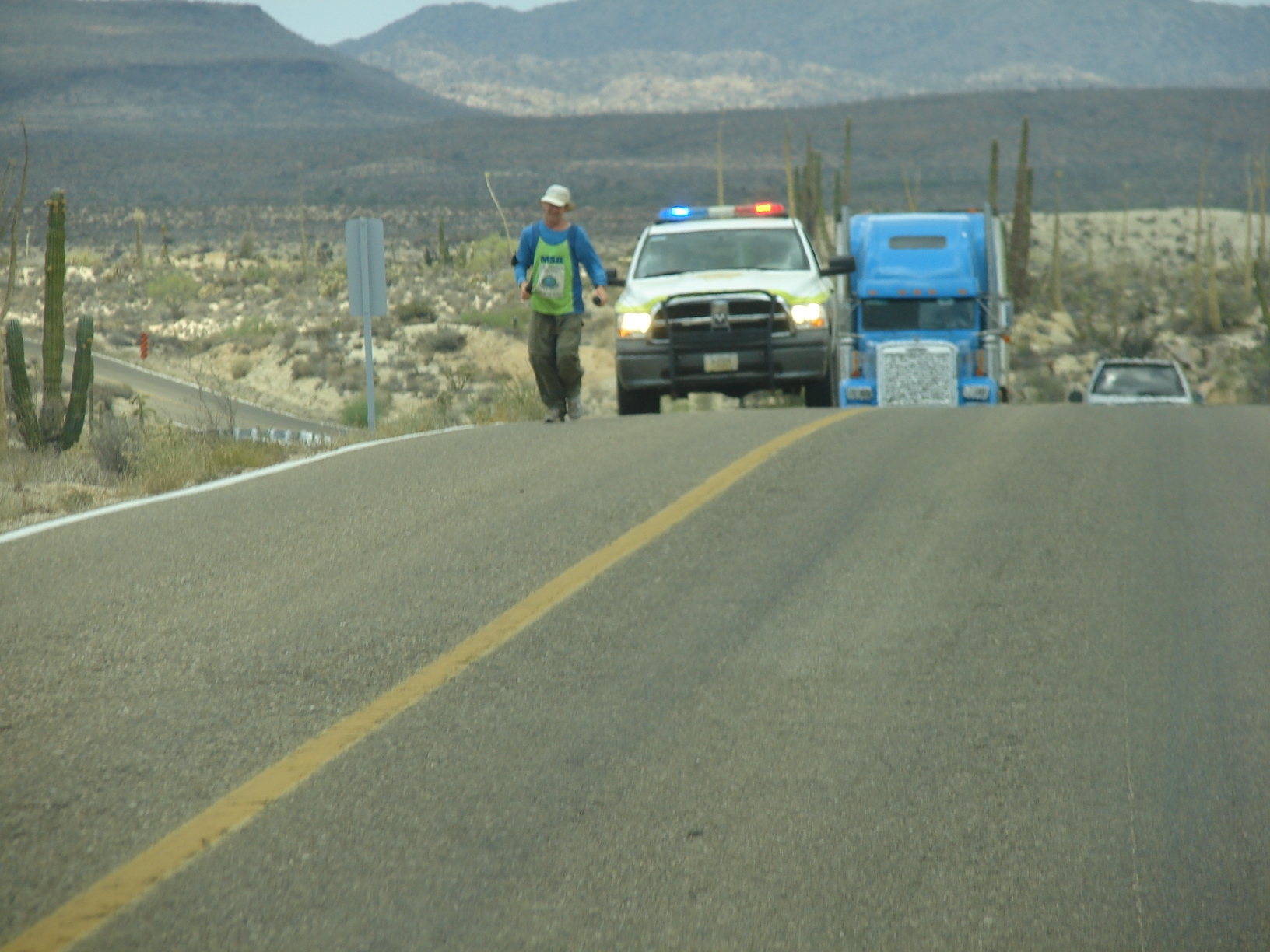 The adventure rolls on.. I can´t believe I am doing this, being escorted through Mexico and enjoying it so much. Today I looked back at Pablos patrol truck with its flashing beacons as I ran effortlessly up those hills. Never in my wildest of dreams did I expect to be having these kind of adventures, in travel books they were of someone else, now they are mine. I am living my dream and intend to hold onto it for every mile.
