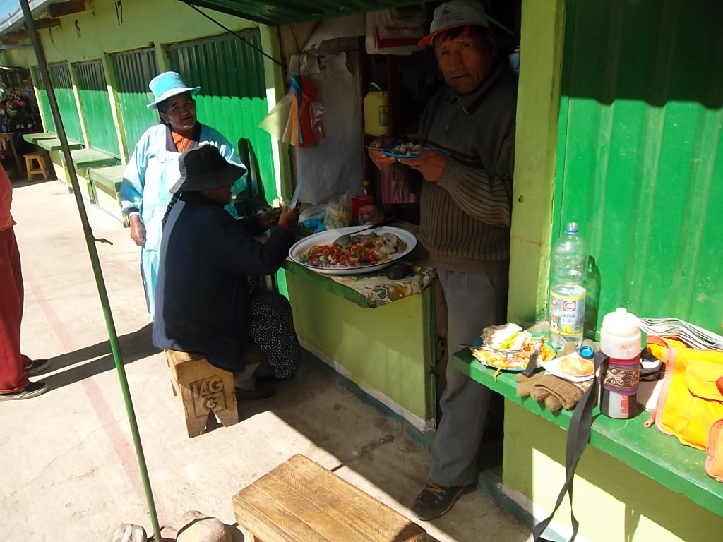 That first day I stopped for lunch at a restaurant in a marketplace just behind a military checkpoint in a village called Guaqui.