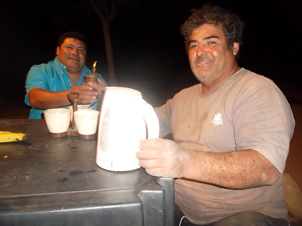 Next morning before I awoke one of the officers drove down to the village and returns with a big bag of pastries for breakfast, I breakfast with him, drinking some mate, the yerba herbal tea of sorts drank from a large egg cup shaped bowl through a metal straw like utensil. The bowl is filled up from either a kettle or a thermos.Drinking mate is a form of togethness, an expression of friendship here in Argentina. I drank some  but prefer my tea or coffee and finished up my breakfast with coffee.