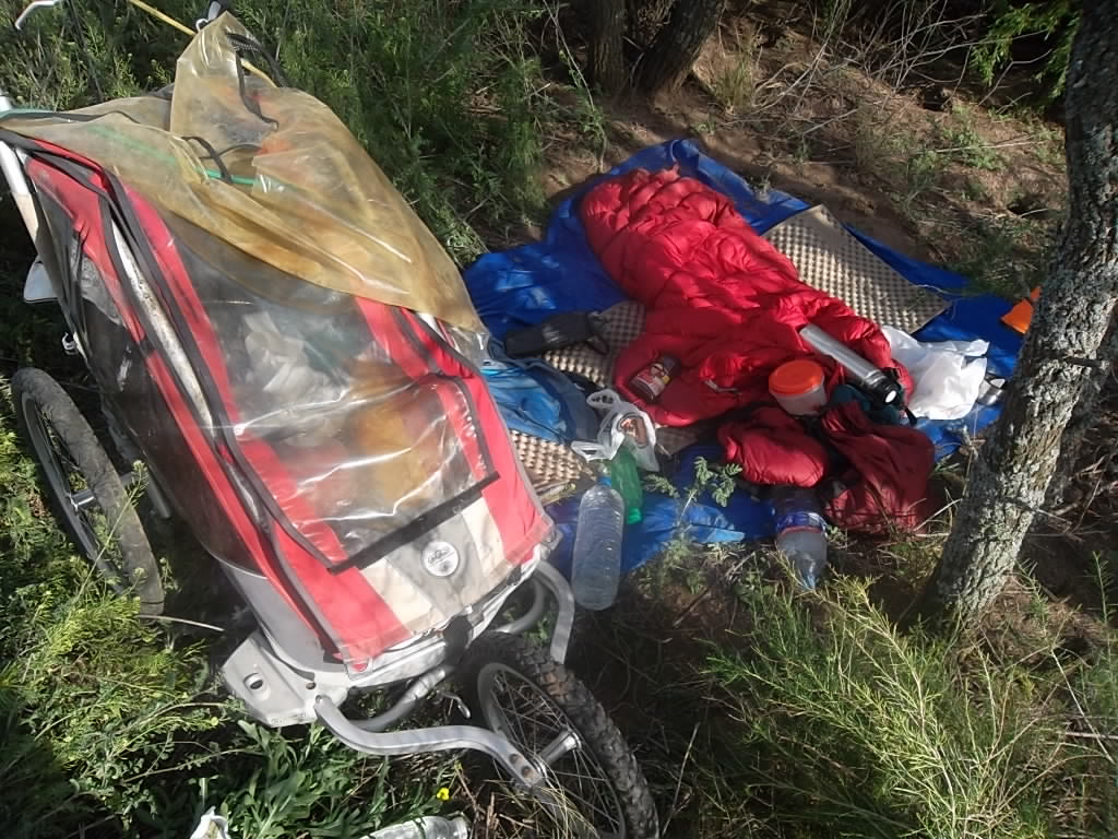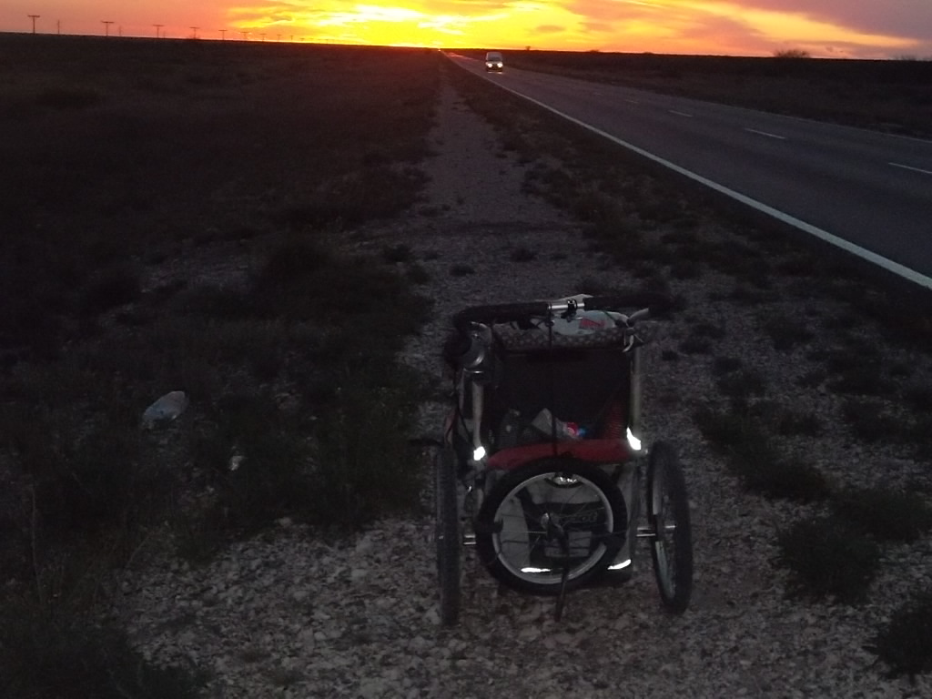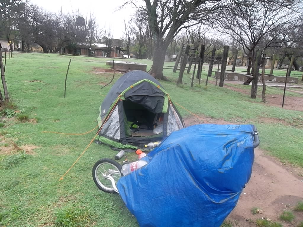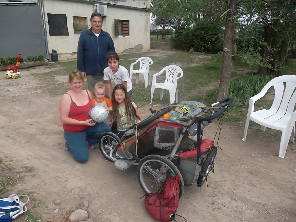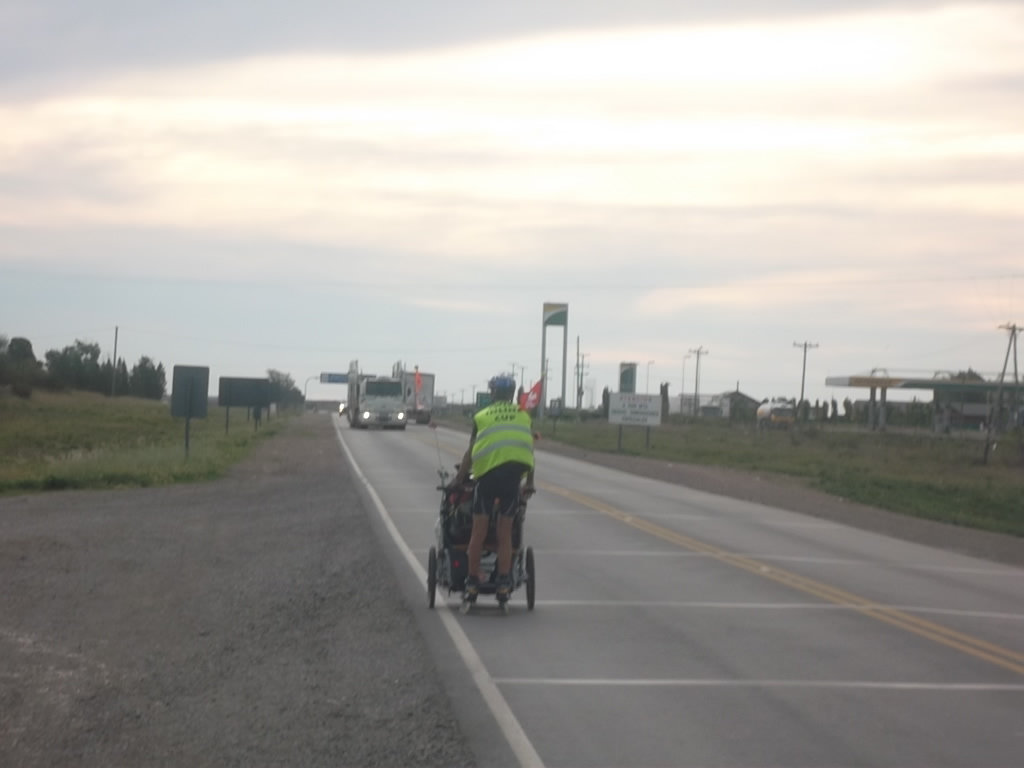 The run into Rio Colorado just over the Rio Negro line was pretty routine, even if I was just a bit tired. About 7km before rio Colorado and at a major junction in La Adela and in the distance I see of all things a man on roler blades pushing a Chariot Cheetah jogging stroller. Just like Nirvana but with a higher carrying capacity. He is being questioned just like me by a cop.