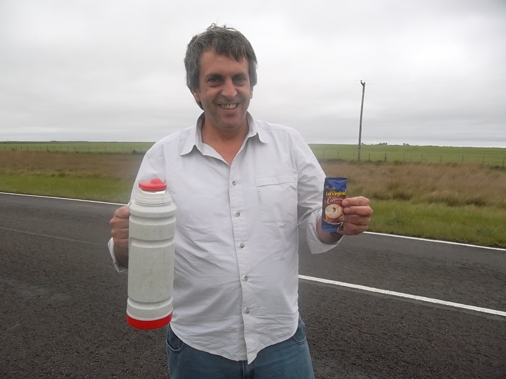 Then Daniel stops his car telling me he saw me a week ago in Santa Rosa and wanted to share a mate with me. He pulls out his thermos, so I pull out a sachet of cappuccino!