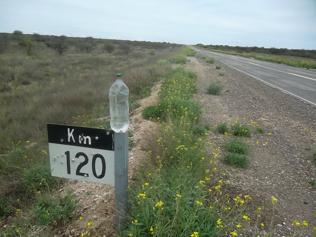 I ask him that the next time a driver is going out can they please deliver my two three litre bottles of water to kms 100 and 120. No problems. Two hours later Victor is on his way to Rio Colorado and tells me he has the bottles and will drop them as requested. Later he is on his way back and confirms he has dropped them at my requested locations.
