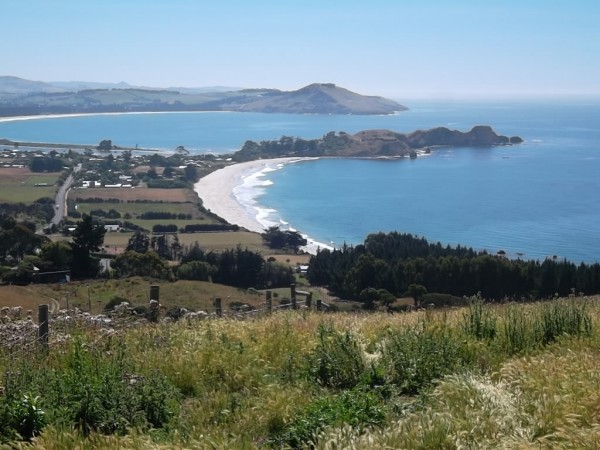 Well the start sign said Dunedin 52km but my route was along the longer breath-taking coastal route. Andrew suggested I stop for a second breakfast when I ran by the end of his road, so I did and Cherie loaded me down with bananas for the road.